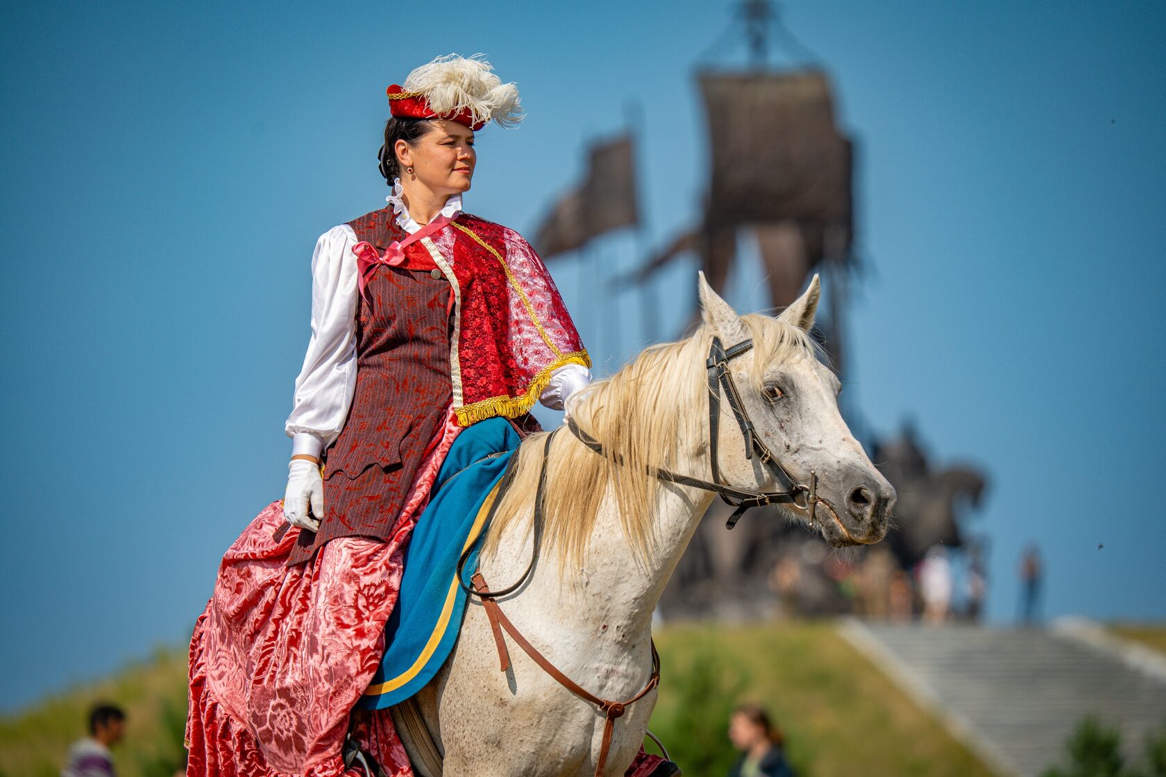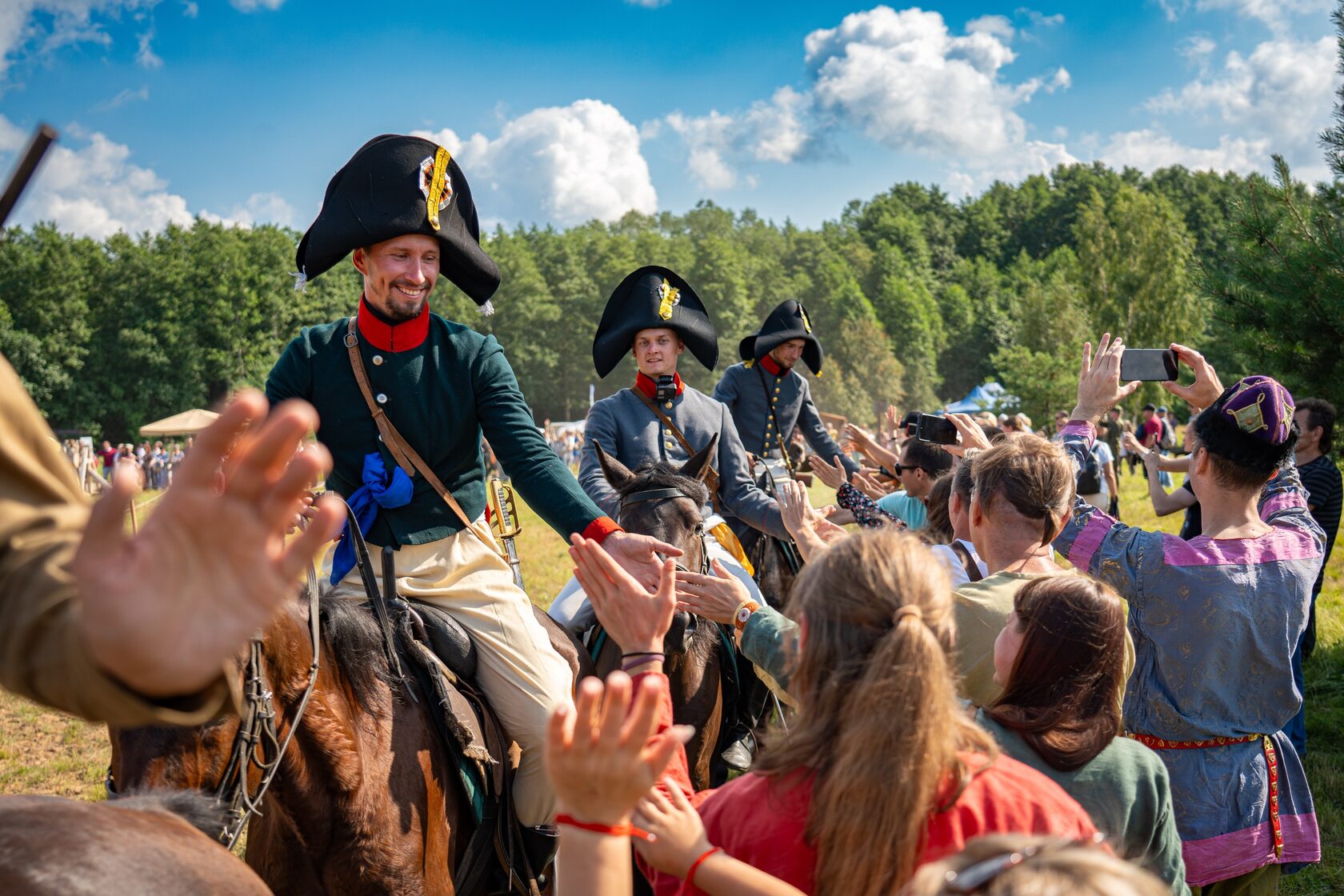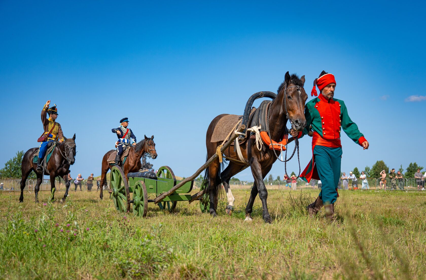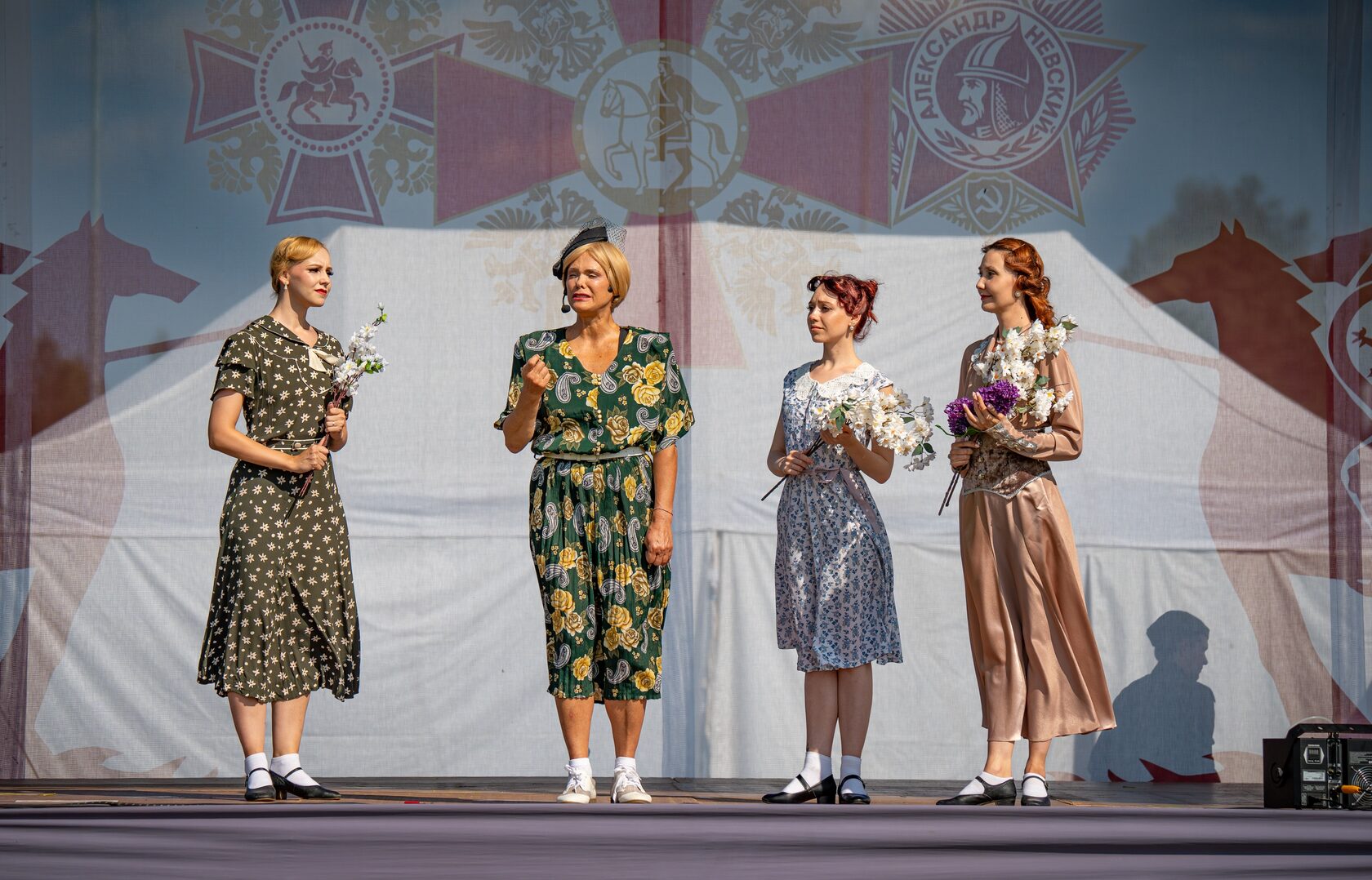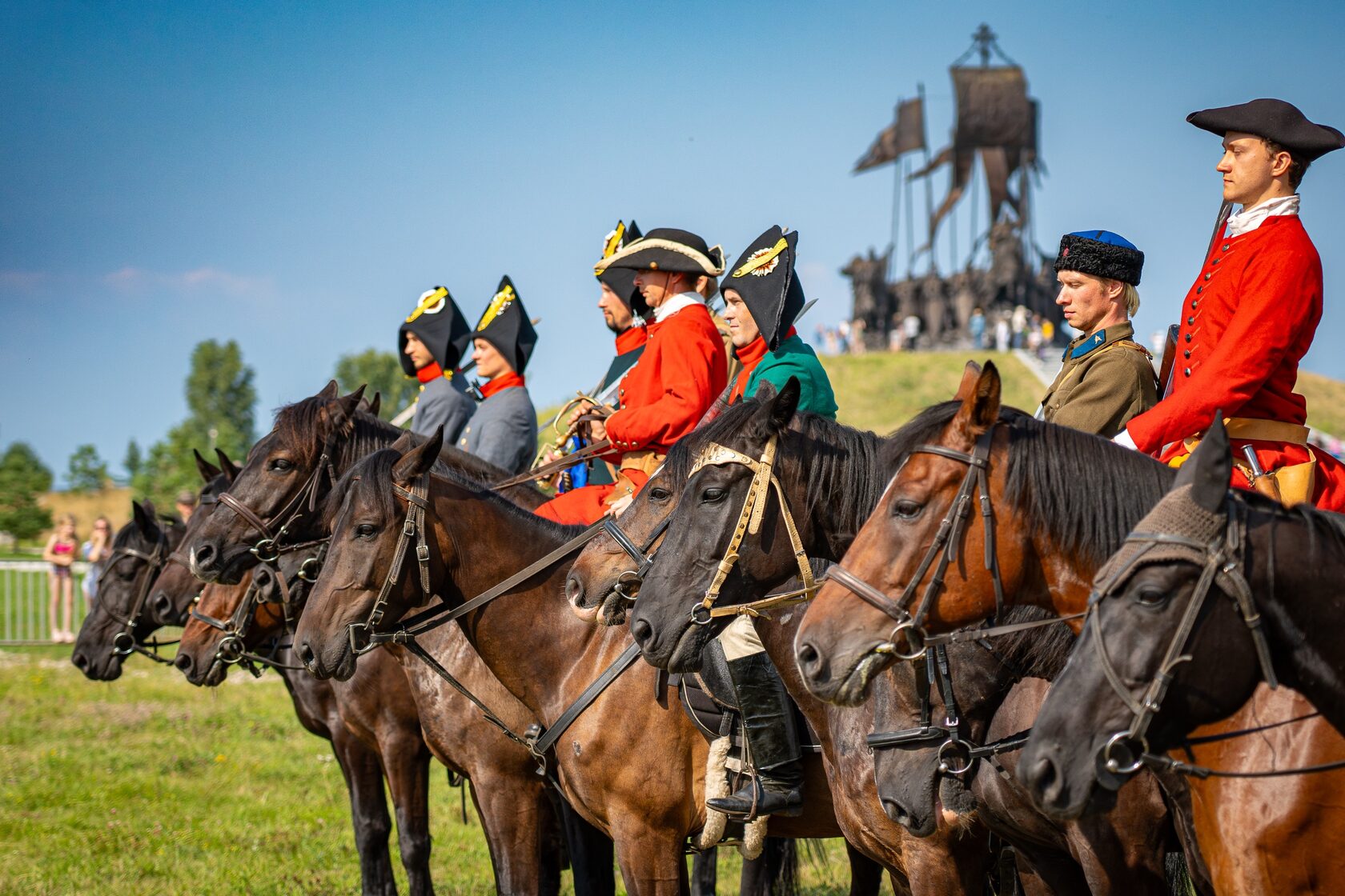 Особую торжественность событию придало шествие реконструкторов – словно сама история раскрыла свои страницы перед зрителями. Драгуны времен Петра Великого, чеканя шаг, проносились мимо, сменяясь строем солдат Великой Отечественной войны – героических защитников нашего времени. Воздух наполнился звуками исторических маршей, ржанием коней и радостными возгласами зрителей.